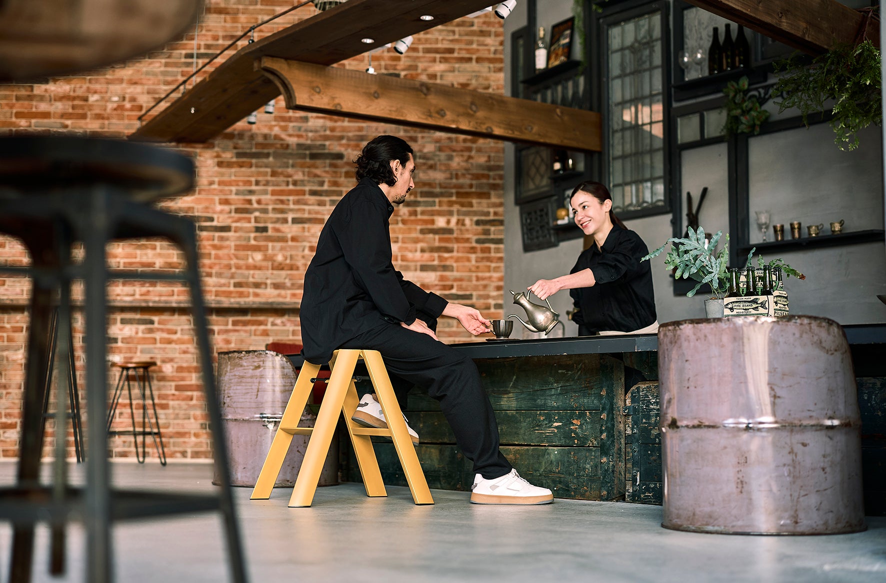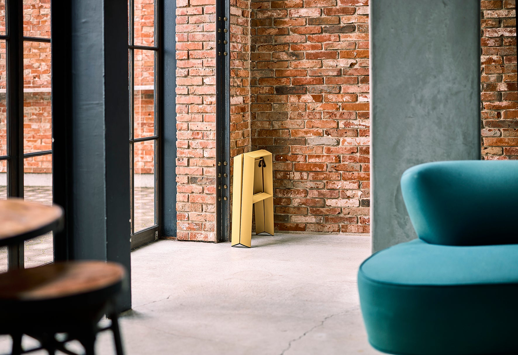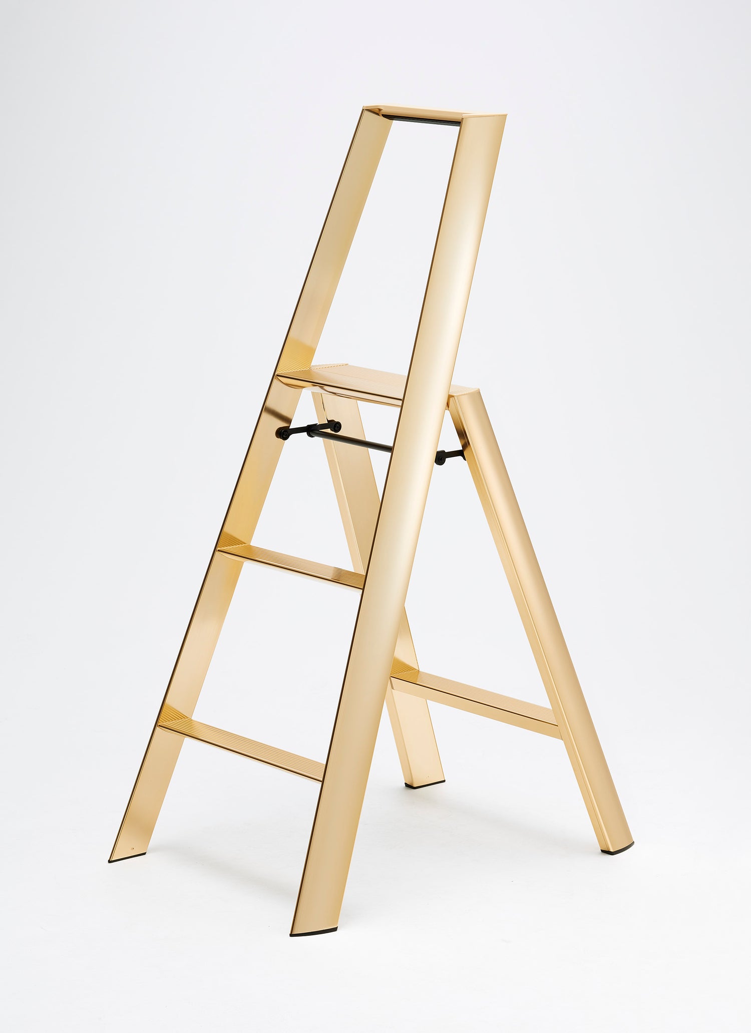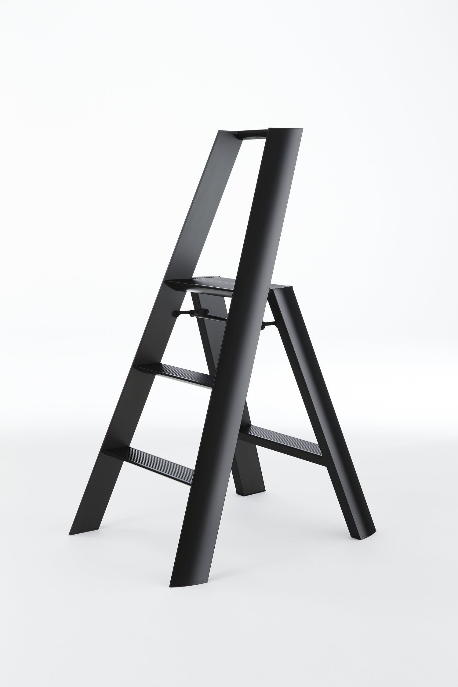 "lucano", a stepladder with a focus on safety and design, meant to be showcased rather than hidden away. The "lucano" stepladder was awarded the "Best of the Best" at the Red Dot Design Awards, an international design competition originating in Germany and held since 1955. A sleek showpiece boasting a design that hides all screws from view, and features triangular cross-sections for the legs and steps to minimize visible surface. The stepladder also stands beautifully when folded.